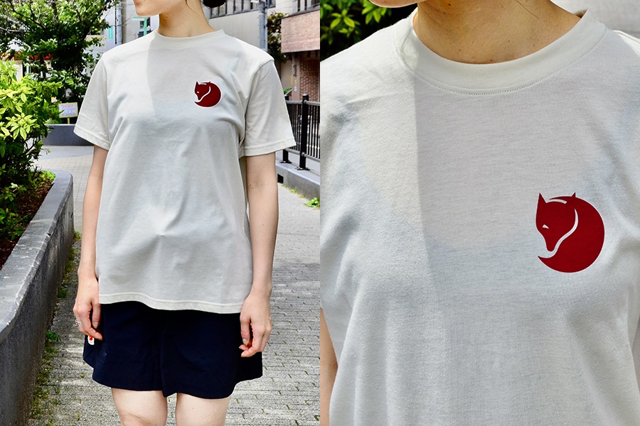 左胸に小さめのホッキョクギツネロゴがプリントされたシンプルデザイン。